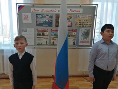 3 декабряв России - это День Неизвестного Солдата. В этот день в школе был организован почетный караул у стенда «Дни воинской Славы» В почетном карауле стояли ученики 4 класса. В каждом классе были проведены часы общения о безымянных героях, защитниках Отечества, погибших в годы Великой Отечественной войны. Лишь немногим героям удается вернуть имена, остальные так и остаются «неизвестными солдатами». Каждый класс совершил виртуальную экскурсию по местам памяти, где установлены памятники и мемориалы неизвестному солдату, братские могилы «Памятники вечной славы». Ученики 10 классов создали видеофильм «Памяти неизвестного солдата», в котором эмоционально и трогательно прочитали письма прадедам и стихи о солдатах, подаривших нам мир, о Родине, о матерях и о желании жить. Память погибших почтили минутой молчания.