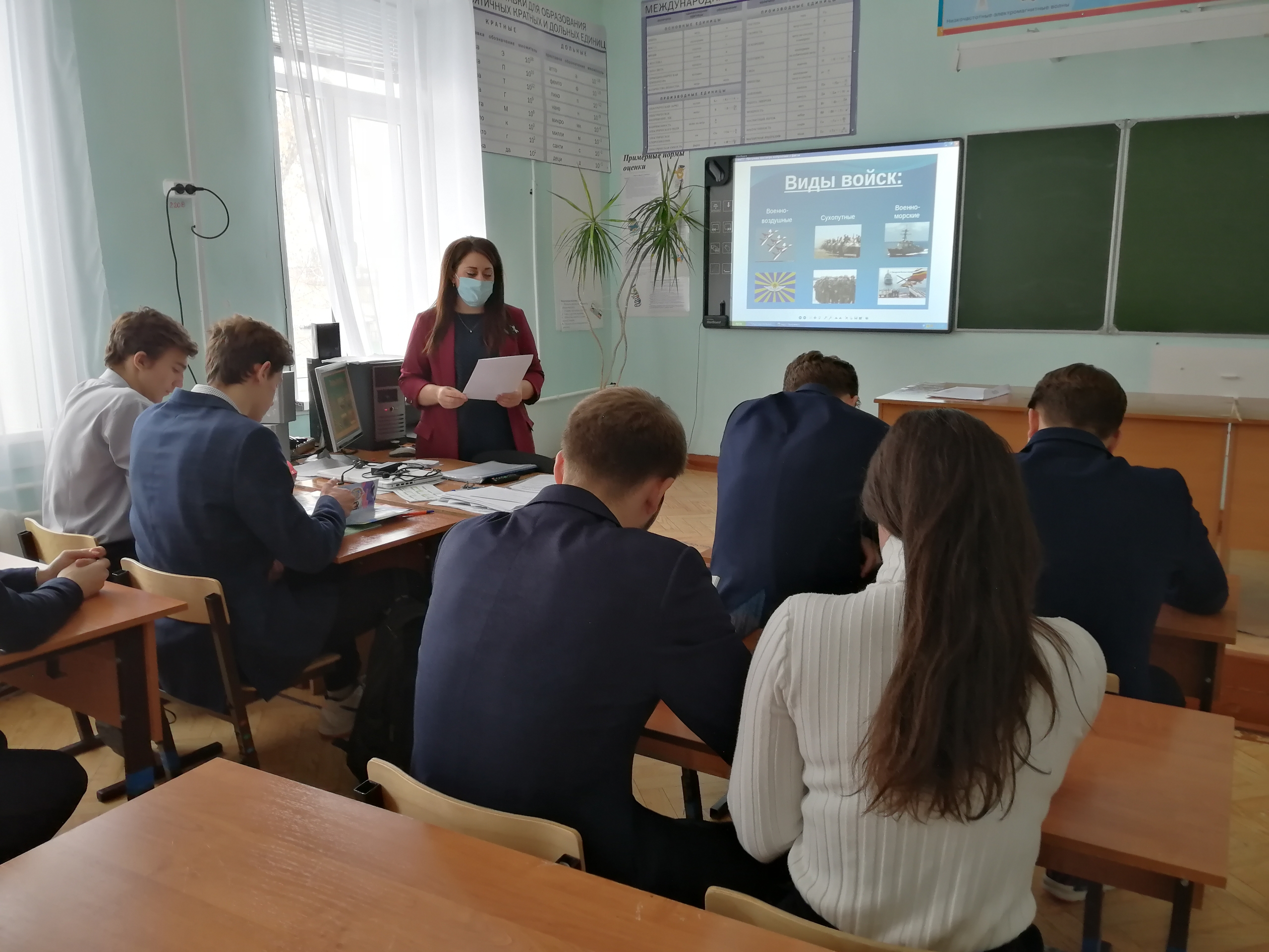 22 декабря в старших классах нашей школы педагогом психологом Фердаусовой Е.В. проводился урок, посвященный военным профессиям. Учащиеся узнали о видах войск, о военных учебных заведениях нашей страны, преимуществах военного образования, а также о тех предметах школьного курса, которые необходимы для получения военной профессии. При проведении урока использовался материал предоставленный работником Новосергиевского военкомата Ахметзяновой В.Г.