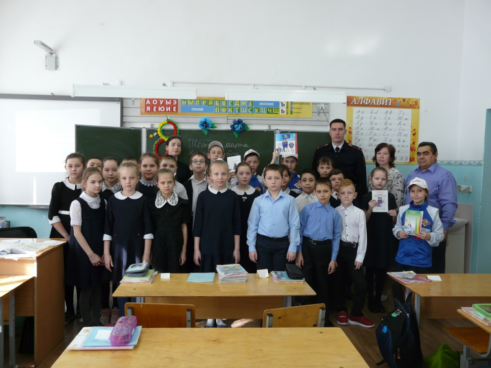 Отряд ЮИД МОБУ «Новосергиевская СОШ №1» «Клаксон» совместно с сотрудниками ОГИБДД ОМВД России по Новосергиевскому району организовали встречу с учащимися 3-4 классов МОБУ «Новосергиевская СОШ №1». Юные инспектора рассказали о своих занятиях, об участии во Всероссийском конкурсе «Безопасное колесо». Продемонстрировали видеофильм об истории создания отрядов Юных инспекторов дорожного движения. Инспектор по пропаганде БДД Бородин Алексей напомнил ребятам о необходимости соблюдения правил дорожного движения, о совместной работе сотрудников Госавтоиспекции и юных инспекторов дорожного движения. В завершении встречи для ребят была организована викторина по знанию правил дорожного движения, всем участникам были вручены сладкие призы.